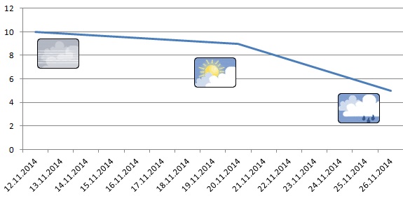 Temperaturen und allgemeines Wetter in der zweiten Novemberhälfte.