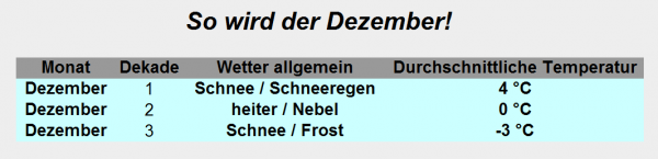 Der Dezember bringt vor allem in der seiner zweiten Hälfte Frostwetter und immer wieder Schneefall bis ins Flachland.