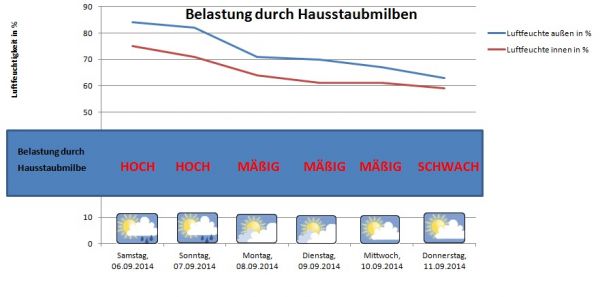 Am Wochenende kann es durch die Ausscheidungen der Hausstaubmilbe zu mäßigen bis hohen Belastungen kommen.