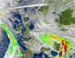 Tiefdruckeinfluss von den Britischen Inseln bis zur Iberischen Halbinsel