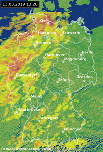Radarbild von Mittwoch, 13.03.2019 um 13.20 Uhr