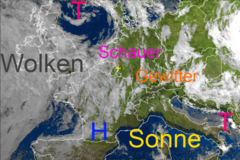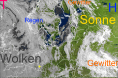 Sonne im Osten und Süden - Regenwolken über Teilen Skandinaviens