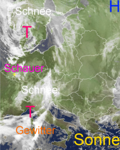 Störungsfront mit Regen und Schnee