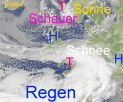 Schnee- und Graupelgewitter auf dem Weg nach Deutschland