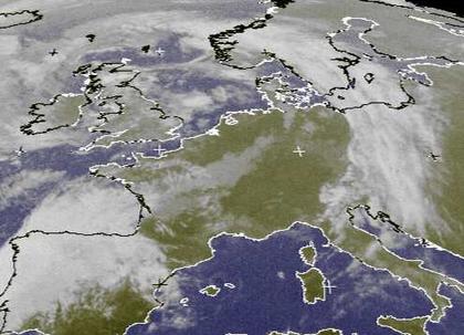 Die dichten Regenwolken der Nacht und des Vormittags liegen mittlerweile östlich von Deutschland. Auf ihrer Rückseite liegen nur einzelne Wolkenfelder. Über Nordspanien erkennt man aber ein Wolkengebiet, das bereits in der Nacht nach Deutschland hereinziehen wird.