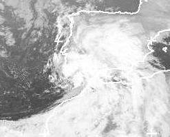 Der Ausschnitt zeigt dichte Bewölkung über Spanien und Portugal. Diese Wolken gehören zu einem Tief südwestlich von Portugal. Es sorgt heute und in den nächsten Tagen für teils kräftige Schauer und Gewitter auf der Iberischen Halbinsel. (Bildquelle: NERC Satellite Receiving Station, Dundee University, Scotland, http://www.sat.dundee.ac.uk/)