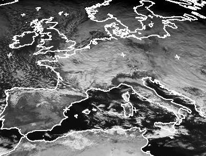 Das Tief 'Isaak' liegt über Deutschland und löst sich nur langsam auf. Dabei sorgt es verbreitet für dichte Wolken. Nur vereinzelt, vor allem im Nordosten und Nordwesten, sind auf dem Satellitenbild vom Montagmittag Auflockerungen zu erkennen. Auch wenn nun langsam der Hochdruckeinfluss zunimmt, bleibt die feuchte Luft auch an den kommenden Tagen weitgehend erhalten, es ist weiter mit einer dichten Wolkendecke zu rechnen. (Bildquelle: NERC Satellite Receiving Station, Dundee University, Scotland, http://www.sat.dundee.ac.uk/)