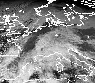 Das alte Tief 'Zebedäus' sorgt weiter für viele Wolken in Europa. Es ändert sich nur wenig. Am Donnerstagmittag erstreckte sich jedoch ein wolkenarmer Streifen von Zentralfrankreich bis nach Schleswig-Holstein. Zwischen zwei Tiefausläufern, die beide jeweils etwas kühlere Luft im Westen von, in der Höhe, warmer Luft im Osten trennen, konnte sich hier etwas trockenere Luft durchsetzen.