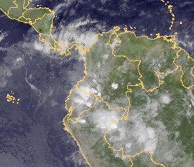 Auf dem heutigen Satellitenbild ist starke Quellbewölkung vor allem über Teilen Panamas, Ecuadors und im Norden Perus zu erkennen, hierbei sind gebietsweise kräftige Schauer und Gewitter möglich.