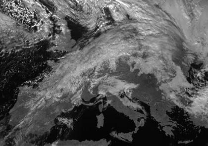 Während die Ausläufer eines Tiefs bei Schottland über Nordeuropa dichte Wolken und Regen bringen, sorgt Hochdruckeinfluss für meist freundliches und trockenes Wetter im Mittelmeerraum. Auf dem Satellitenbild von Dienstag Mittag sind Italien und Griechenland nahezu wolkenfrei.
