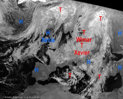 Auf dem heutigen Satellitenfoto zeigt sich, dass Hochdruckeinfluss von der Iberischen Halbinsel, über Frankreich bis nach Großbritanien für häufig freundliches und meist trockenes Wetter sorgt. Dagegen kommt es durch Tiefdruckeinfluss in weiten Teilen der Osthälfte Europas von Skandinavien, über die Ostsee bis nach Russland und weiter über Polen, Deutschland und bis ins zentrale und östliche Mittelmeer zu häufig starker oder dichter Bewölkung und zu Regen, in Russland und Skandinavien meist zu Schneefällen. Im Mittelmeerraum treten teils kräftige Schauer oder Gewitter auf.