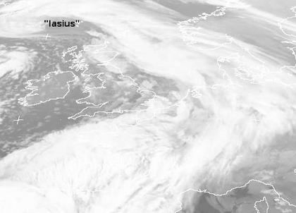 Das Tief 'Iasius' bei Island schickt derzeit seine Fronten nach West- und Mitteleuropa. Dabei fällt gebietsweise Regen. Teilweise ist es auch noch stürmisch.