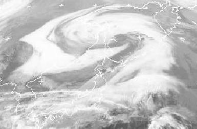 Zur Zeit bringt ein Tief in Japan sehr wechselhaftes Wetter. Ungewöhnlich scharf sind die Wolkenkanten des Cirrusschirms dieses Tiefs ausgebildet, wie auf dem Satellitenbild schön zu erkennen ist.