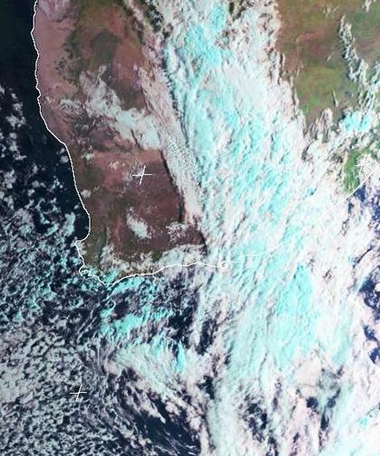 Eine Kaltfront liegt derzeit über dem Osten Südafrikas. Dabei fallen hier teils kräftige Schauer, oder es gibt Gewitter.
