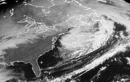 Ein kräftiges Tief zieht bei Neufundland langsam auf den Atlantik hinaus. Auf seiner Rückseite hat es von Norden sehr kalte Luft an die Ostküste der USA gebracht. Sie strömt weiter auf das Meer, wo sich rasch zahlreiche Schauerwolken bilden. Über dem Festland sorgt dagegen zunehmender Hochdruckeinfluss für zunächst geringe Bewölkung. Weiter im Westen zeichnet sich aber mit neuen Wolken bereits die Ankunft eines neuen kräftigen Tiefs ab. (Bildquelle: NERC Satellite Receiving Station, Dundee University, Scotland, http://www.sat.dundee.ac.uk/)