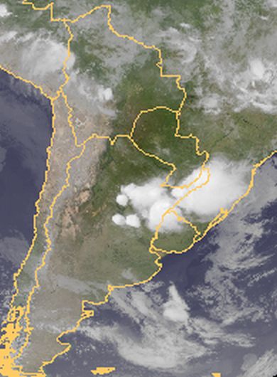 Im Norden Argentiniens haben sich kräftige Schauer und Gewitter entwickelt. Diese ist an den konvektiven Wolken im Satellitenbild gut erkennbar.