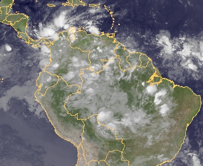 Über dem Norden Südamerikas haben sich kräftige Schauer und Gewitter entwickelt. Diese entstehen jahreszeitlich bedingt in Zusammenhang mit der innertropischen Konvergenzzone.