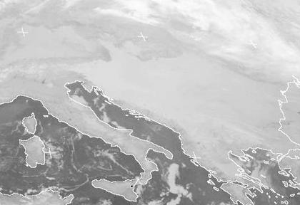 Weite Teile Südosteuropas befinden sich derzeit unter einer geschlossenen Hochnebel- oder Nebeldecke, wie auf dem Satellitenbild schön zu erkennen ist. Ursache hierfür ist ein starkes Hochdruckgebiet und wenig Wind.