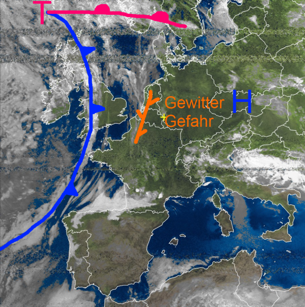 Bis morgen überquert uns dann die Kaltfront von den Britischen-Inseln und bringt spürbare Abkühlung.