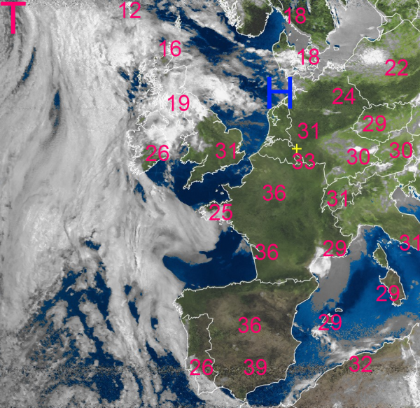 Das Wetter hält sich in den meisten Gebieten unseres Kontinents an den kalendarischen Sommerbeginn. Die Sonne dominiert und nur örtlich haben sich im Tagesverlauf einige Schauer- und Gewitterzellen gebildet. Die Temperaturen liegen oft oberhalb der 30 Grad - Marke. Die Wolken weilen derzeit draußen über dem Atlantik.