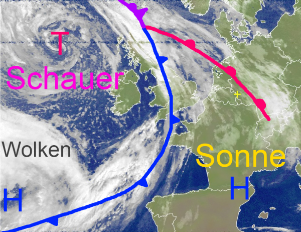 Die Fronten des Atlantischen Sturmtiefs überqueren bis Sonntag Deutschland von West nach Ost. Im Warmsektor des Tiefs wird es nochmals spätsommerlich warm. Heute Abend erreicht die Kaltfront den Nordwesten und Westen und bringt teils gewittrige Regengüsse. Auf der Rückseite der Front strömt kühlere Luft ins Land.