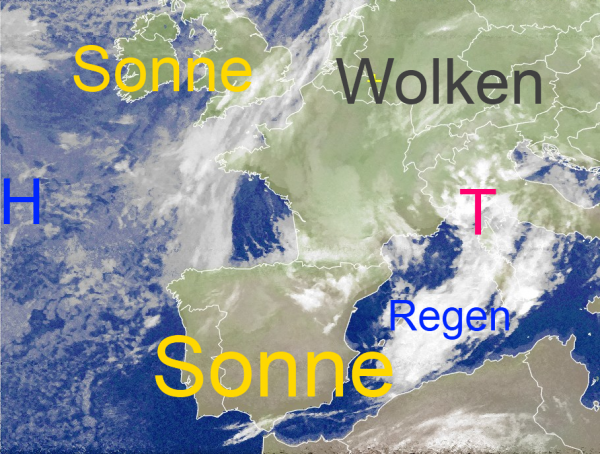 Durch die windschwache Wetterlage über Mitteleuropa hält sich vielfach eine zähe Wolkendecke, aus der es stellenweise etwas tröpfeln oder nieseln kann. Teilweise ist es auch neblig-trübe.