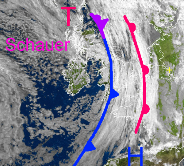 Nach kurzer Wetterberuhigung und einigen freundlichen Abschnitten, erreichen schwache Fronten von den Britischen - Inseln den Nordwesten und Westen unseres Landes und bringen im Tagesverlauf gebietsweise leichten Regen.