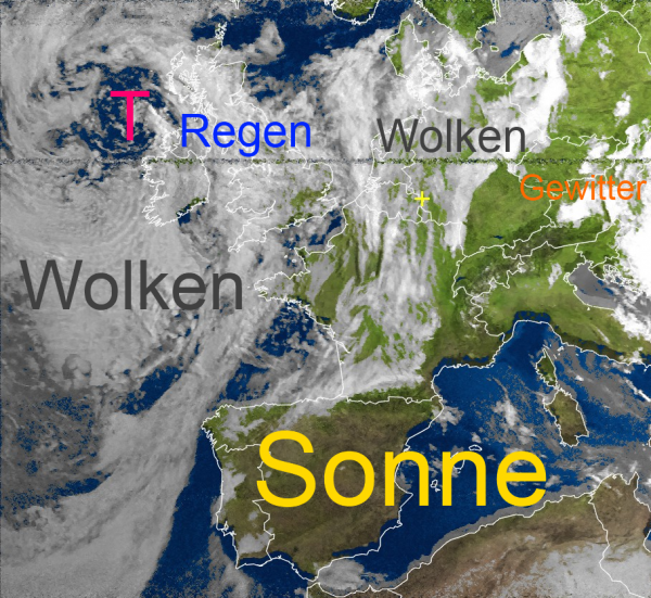 Ein Tief über dem Atlantik versorgt auch Westeuropa mit vielen Wolken und gelegentlichen Regenfällen. Dieses Tief wandert bis morgen zur Nordsee und bringt auch bei uns frischen Wind ins Wettergeschehen. Schauer und Gewitter nehmen dabei vorübergehend zu.