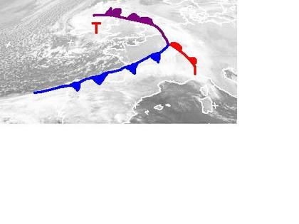 Das Tief „Zebedäus“ mit Zentrum über Irland sorgt für dichte Wolken mit Regen oder Schauern von Großbritannien und Frankreich bis nach Spanien und Portugal. Auf seiner Rückseite strömen kalte Luftmassen polaren Ursprungs nach. Durch das, relativ zur Luft, wärmere Atlantikwasser bilden sich in einer labilen Schichtung verbreitet Schauer. Diese Schauer sind auf dem Satellitenbild von Montag früh gut zu erkennen. (Bildquelle: NERC Satellite Receiving Station, Dundee University, Scotland, http://www.sat.dundee.ac.uk/)