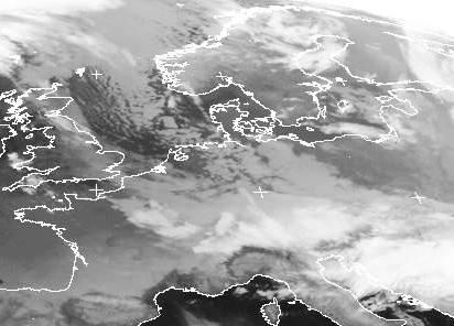 Der Wolkenwirbel über Nordskandinavien gehört zu dem Zentrum des Tiefs 'Michael'. Durch dieses Tief werden von Nordwesten her immer wieder Schauer nach Deutschland gelenkt. Diese Schauer sind über der Nordsee gut zu erkennen. Auf der Nordseite der Alpen staut sich die Luft, so dass sich eine dichte Wolkendecke gebildet hat, hier schneit es ergiebig!