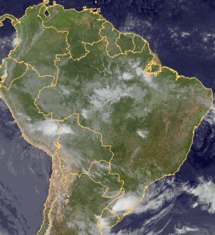 Auf dem Satellitenbild sind teils schwere Schauer und Gewitter über Brasilien zu erkennen.
