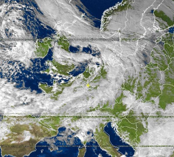 Das Satellitenfoto von heute Nachmittag zeigt verbreitet dichte Wolken über dem europäischen Kontinent. Besonders in der Nordwesthälfte Europas herrscht vielfach wechselhaftes Wetter mit einzelnen Schauern und regionalen Gewittern. Zudem weht von der Biskaya, über die Britischen Inseln, die Nordsee bis nach Skandinavien ein vielfach frischer bis starker, besonders rund um Großbritannien auch stürmischer Wind mit möglichen Sturmböen. Ruhigeres und trockenes Herbstwetter herrscht dagegen in Osteuropa und in weiten Teilen des Mittelmeerraums.