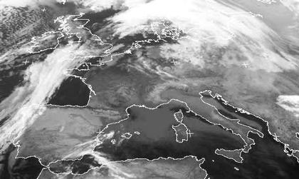 Das neue Sturmtief 'Freddy' bei Norwegen bestimmt das Wetter in Mitteleuropa. Auf dem Satellitenbild vom Montagmorgen erkennt man sehr gut die Schichtbewölkung seiner Warmfront über Südskandinavien und dem Baltikum. Frankreich und Deutschland befinden sich im Warmsektor des Tiefs, im Tagesverlauf steigt die Temperatur hier auf ungewöhnlich milde 10 bis 14 Grad. In der Nacht nähert sich jedoch die Kaltfront von Westen her, sie liegt zur Zeit über Südengland und der Biscaya. In Süd- und Südosteuropa sorgt Hoch 'Fridolin' für ruhiges Wetter ; der Himmel ist hier meist wolkenlos.