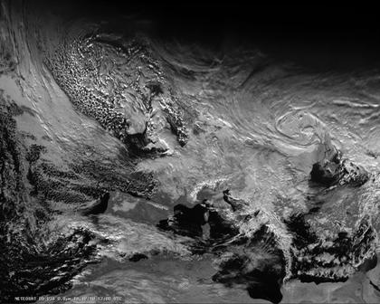 Auf dem heutigen Satellitenfoto zeigt sich Europa von der Mitte jeweils bis in den Osten sowie in den Norden Europas stark bewölkt, hierbei kommt es verbreitet zu Schneefällen. Weitere Tiefdruckgebiete bringen auch Großbritanien meist winterliches Wetter mit Schneefällen. Freundlicher und überwiegend trocken ist es in weitn Teilen des Mittelmeers sowie im Südosten Europas.