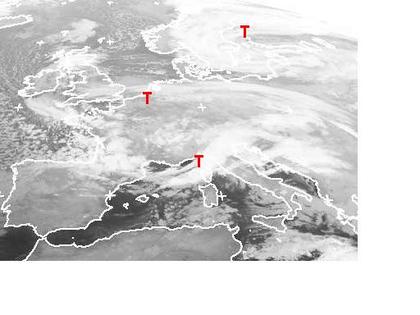 Tiefdruckgebiete sorgen in weiten Teilen Europas für dichte Wolken mit Regen oder Schnee. Dazwischen sind auf dem Satellitenbild von Montag früh aber auch, vor allem über Dänemark und Norddeutschland, Wolkenlücken zu erkennen. Auch im Süden der Iberischen Halbinsel ist es überwiegend freundlich. (Bildquelle: NERC Satellite Receiving Station, Dundee University, Scotland, http://www.sat.dundee.ac.uk/)