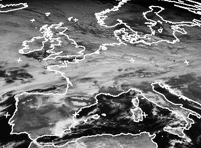 Auch am Donnerstag hielten sich über Mitteleuropa viele dichte Wolken. In der Kaltluft über der Nordsee zeichnen sich die Muster von Schauern ab. Vereinzelt gibt es aber auch am Mittelmeer Schauer oder Gewitter, sonst scheint hier häufiger die Sonne. (Bildquelle: NERC Satellite Receiving Station, Dundee University, Scotland, http://www.sat.dundee.ac.uk/)