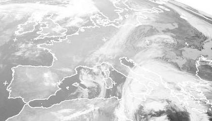Ein Hoch über Frankreich sorgt dafür dass auf dem Satellitenbild von Samstag früh von Portugal bis Südschweden nur wenige Wolken zu erkennen sind. Nördlich und südlich dieses Hochs kommt es unter dichten Wolken gebietsweise zu Regen. Die dichten Wolken über dem zentralen Mittelmeer gehören zu einem Tief dass in Italien und Griechenland, aber vor allem auch in Tunesien und Libyen für kräftige Schauer und Gewitter mit stürmischen Böen sorgt. (Bildquelle: NERC Satellite Receiving Station, Dundee University, Scotland, http://www.sat.dundee.ac.uk/)