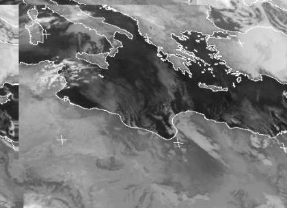 Der Ausschnitt zeigt Wolkenstraßen im östlichen Mittelmeer; sie entstehen in einer nördlichen Strömung welche durch eine Hochdruckbrücke von Spanien bis zum schwarzen Meer verursacht wird. Kalte Festlandsluft strömt nach Süden über das relativ warme Mittelmeerwasser, dabei entstehen Quellwolken die mit zunehmender Entfernung vom Festland anwachsen und sich dabei parallel zur vorherrschenden Windrichtung anordnen. Schön zu erkennen ist auch der Kaltluftsee im inneren der Türkei; die relativ warme Südükste zeichnet sich durch einen deutlich dunkleren Grauton ab.