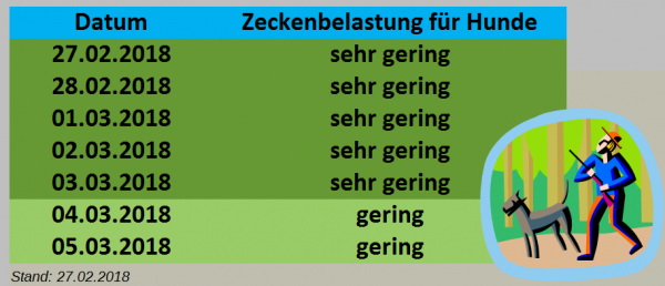 Der Monatswechseln verläuft für die blutsaugenden Parasiten denkbar schlecht. Die eisigen Temperaturen, vor allem in den Nächten, drängen die sonst so bewegungsfreudigen Zecken weiter ins Unterholz zurück.
