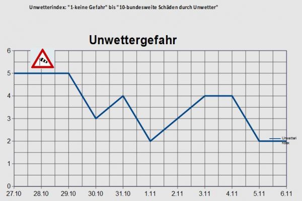 Zu Anfang der kommenden Woche deuten sich für die Küstenregionen teils kräftige Ausläufer atlantischer Tiefdruckgebiete an, dabei sind durchaus mögliche Sturmböen zu erwarten. Sonst besteht bis in den November hinein aber keine Sturmgefahr.
