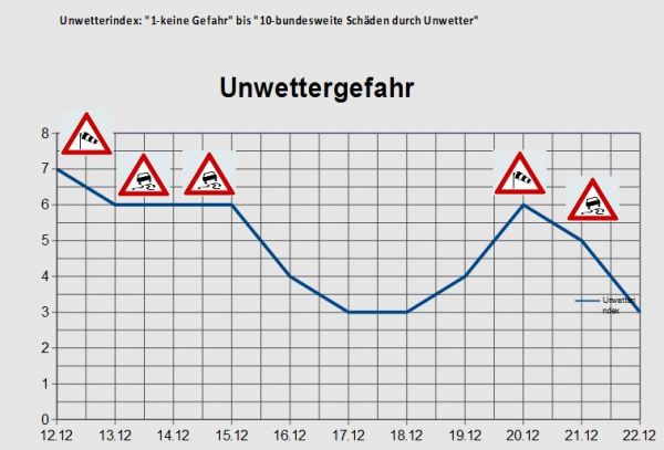 Zu Beginn der kommenden Woche beruhigt sich das Wetter zunächst, bevor es zur zweiten Wochenhälfte wieder zunehmend turbulent wird, denn es ziehen erneut Ausläufer eines Sturmfelds über Deutschland hinweg. Vor allem auf den Bergen der norddeustchen Mittelgebirge und an den Küsten muss erneut mit starkem bis stürmischem Wind gerechnet werden. Dabei sind orkanartige Böen möglich. Durch die verhältnismäßig milden Luftmassen liegt die Schneefallgrenze meist zwischen 700 und 1000 Metern, so dass es im Flachland meist eher grau oder grün statt weiß bleibt.