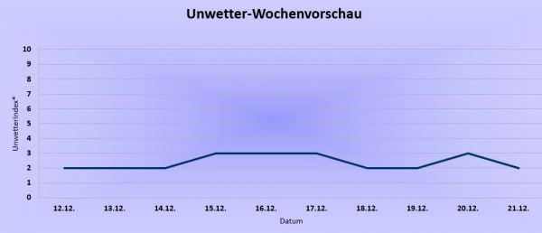 Für die aktuelle Woche erwartet uns zunächst noch leicht wechselhaftes, aber mildes Wetter, jedoch herrscht weder Frost noch ist es windig. Im weiteren Wochenverlauf nimmt der Hochdruckeinfluss noch weiter zu und die Temperaturen gehen nur leicht zurück. Ab Donnerstag ist dann bei leichtem Nachtfrost in den Morgenstunden wieder häufiger mit Rauhreif zu rechnen, sonst bestehen aber nur geringe Wetterrisiken.