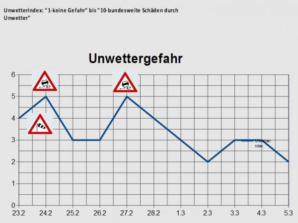 In der nächsten Woche herrscht verbreitet unbeständiges und nasskaltes Wetter, dabei fallen die Niederschläge voraussichtlich besonders im Süden und Osten häufig als Schnee, so dass hier mit Gefahren durch Straßenglätte zu rechnen ist. In Verbindung mit dem Durchzug einzelner Tiefausläufer frischt auch der Wind spürbar auf. An den Küsten und auf den Hochlagen der nördlichen Mittelgebirge ist vorübergehend mit Sturmböen zu rechnen, sonst weht der Wind vor allem im Norden, aber auch im Westen zeitweise frisch bis stark. Gegen Ende der Woche beruhigt sich das Wetter insgesamt wieder.