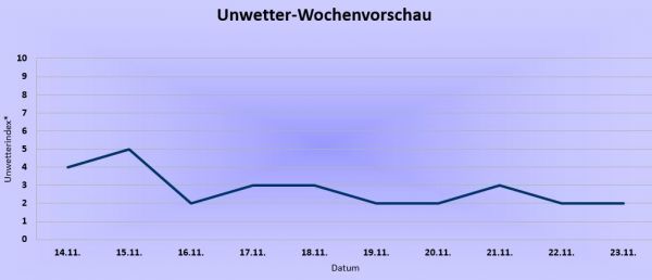 Die Gefahr durch Unwetter bleibt für die laufende Woche insgesamt eher niedrig. Vor allem am Montag und Dienstag sorgen atlantische Tiefausläufer und ein teils gefrorender Boden für stellenweise glatte Straßen insbesondere im Osten, Südosten und in höheren Lagen. Mildere Luftmassen sorgen im weiteren Wochenverlauf dann für oft trübes, nasskaltes und teils windiges Herbstwetter. An den Küsten wird es zeitweise stürmisch.