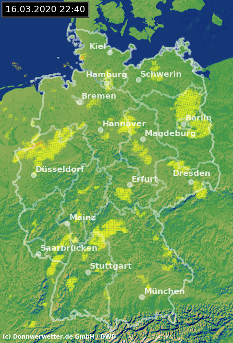 Radarbild von Montag, 16.03.2020 um 22.40 Uhr