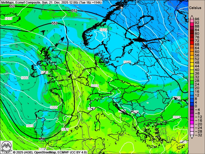 Entscheidend für die Wetterentwicklung über Weihnachten ist das Vorankommen mehrerer Tiefdruckgebiete von Westen in Richtung Mittelmeerraum. Diese Entwicklung, die sowohl vom europäischen ECMWF-Modell als auch vom ICON-Modell gestützt wird, begünstigt den Aufbau einer ausgeprägten Ostströmung über Mitteleuropa sowie über Nord- und Ostsee.