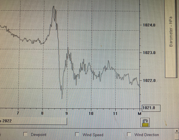 In den frühen Mogenstunden des Sonntag, zwischen 02.00 und 03.00 Uhr, waren die Druckwellen, dieses mal aus der entgegengesetzten Richtung, dann erneut messbar: