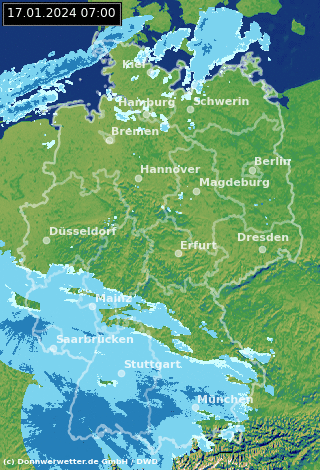 Am Nachmittag ist dann von Köln bis runter nach Basel sowie weiterhin auch in Bayern und Baden-Württemberg verbreitet mit Eisregen und Schneefällen zu rechnen.Schwache Ausläufer erreichen auch Brandenburg und Berlin.