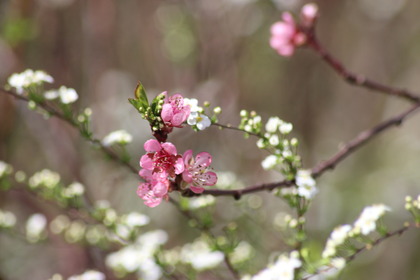 Rein vorsichtshalber sollten frostempfindliche Pflanzen in den kommenden Nächten geschützt werden. Auch im Flachland droht bis Donnerstag leichter Frost. Besonders die Blüten, wie hier bei unserem Pfirsichbaum, sind empfindlich.