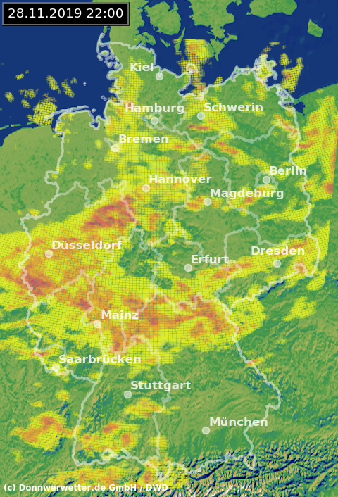 Radarbild von Donnerstag, 28.11.2019 um 22.00 Uhr